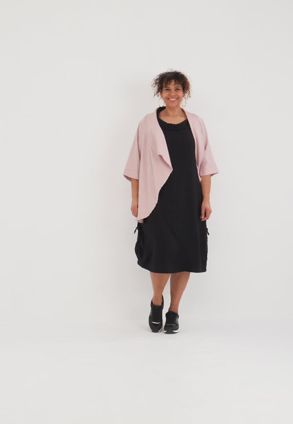Ein Kleid, das du einfach überwirfst und sofort gut angezogen bist: fließender Viskose-Komfort, ein eleganter Wasserfallkragen und die Ton-in-Ton-Struktur machen „Veya“ zum perfekten Mix aus Statement und Minimalismus.