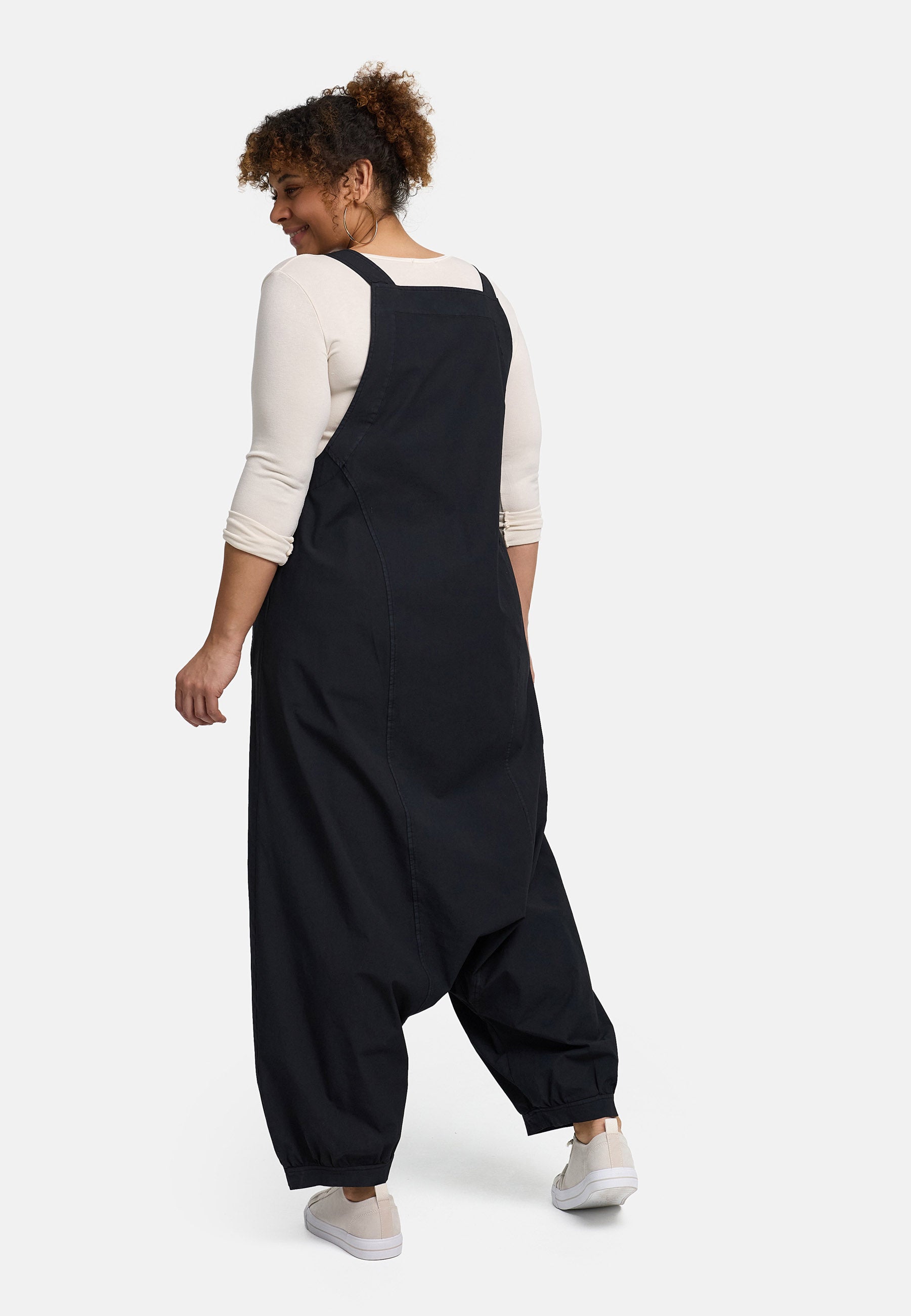 Manchmal braucht es ein Teil, das alles mitmacht – und dabei aussieht, als wäre es genau so geplant. Die „Niva“ Latzhose bringt diese entspannte Coolness auf den Punkt: Die großzügige, fließende Form mit tiefer Schrittpartie wirkt lässig und gleichzeitig bewusst designt. Formgebende Nähte geben Struktur, während die elastischen Beinabschlüsse den Look modern bündeln.